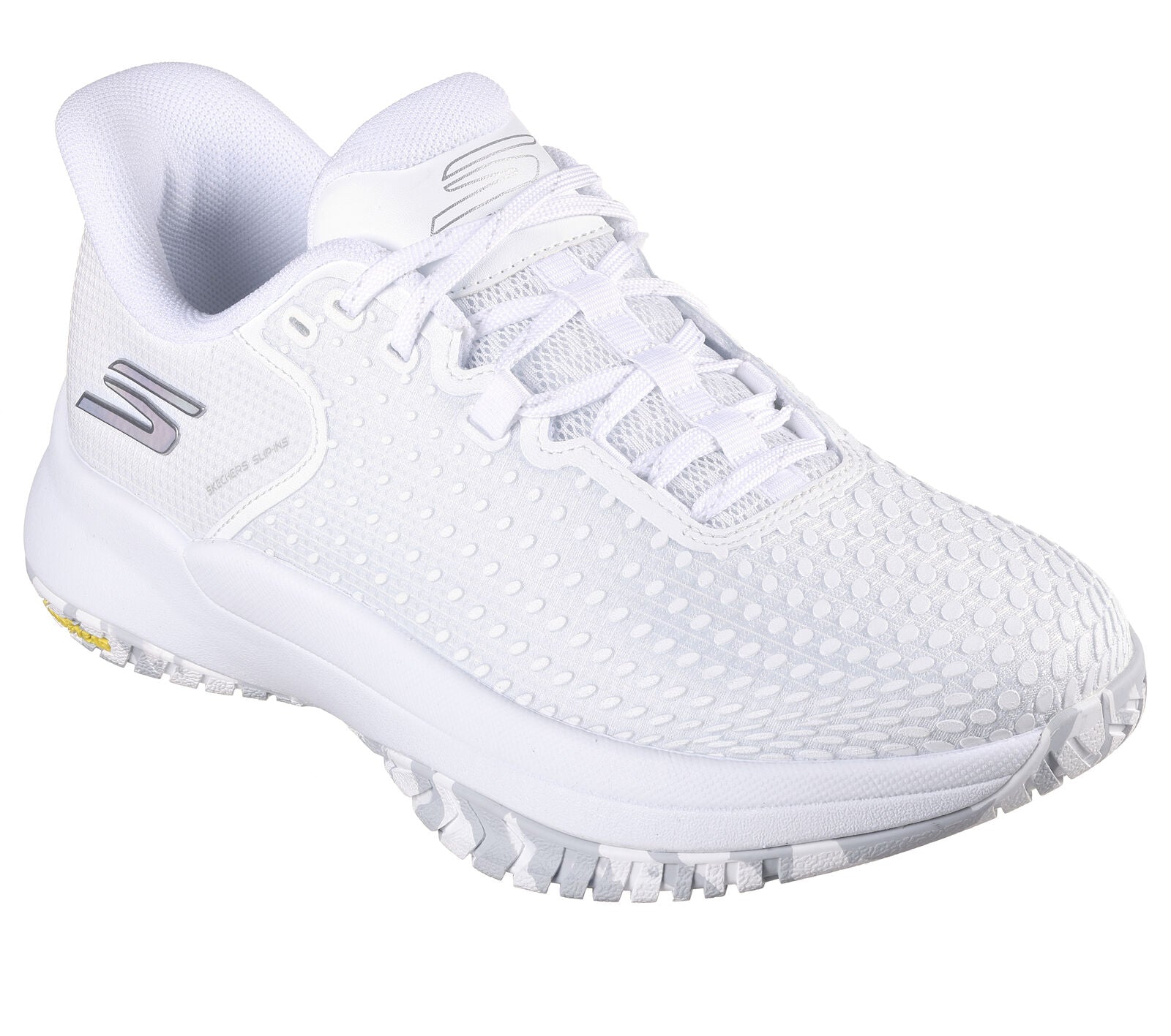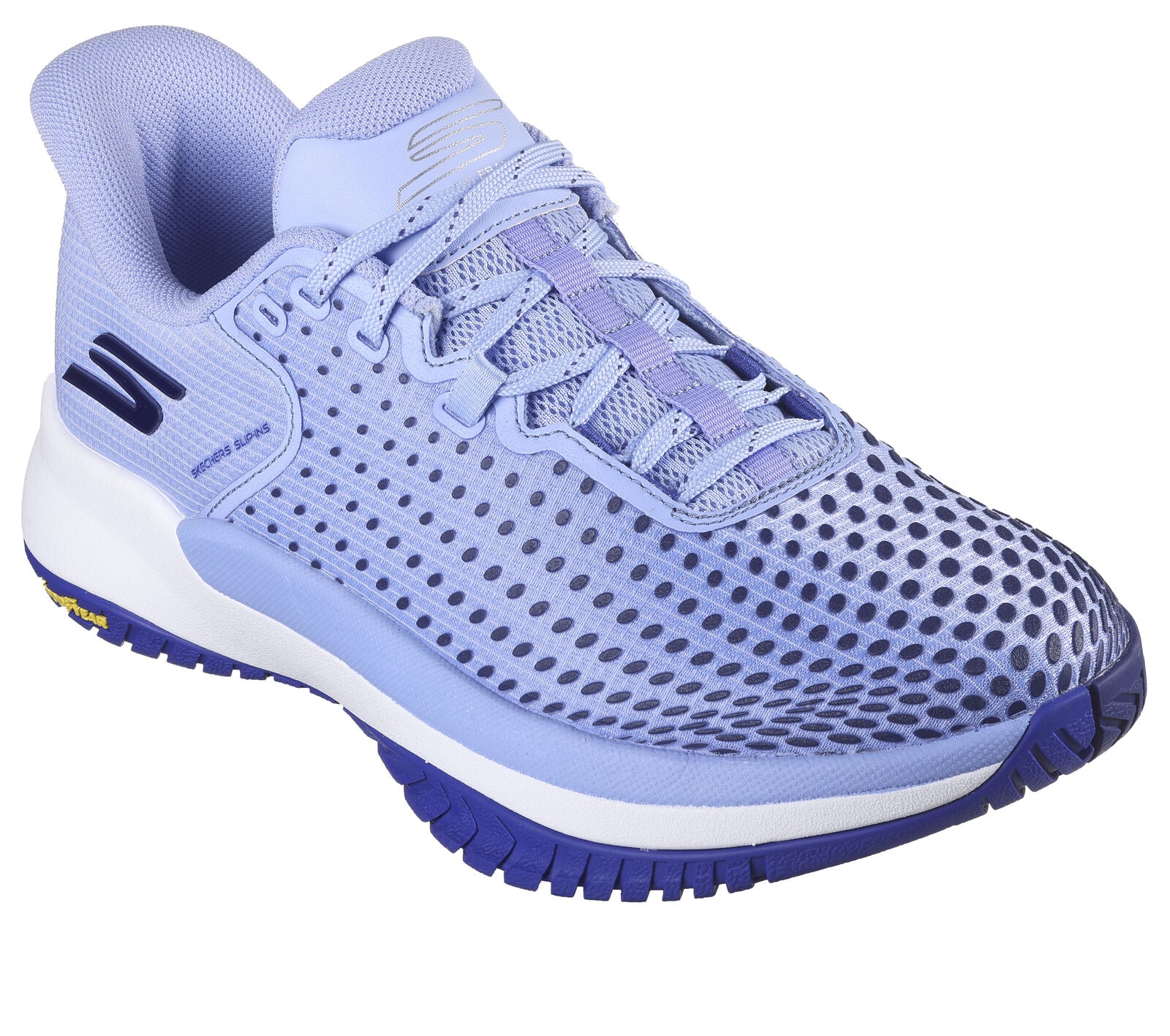 Take your game to the next level with Skechers Hands Free Slip-ins®: Viper Court Elite. Created specifically for the competitive Pickleball athlete, this slip-on court shoe features our exclusive hands-free Heel Pillow™ with an athletic mesh and screen print upper, removable Arch Fit® insole, and lightweight ECO FLIGHT™ cushioning. The design is complete with a Goodyear® Rubber Performance Outsole built for increased durability and control on the Pickleball court surface.