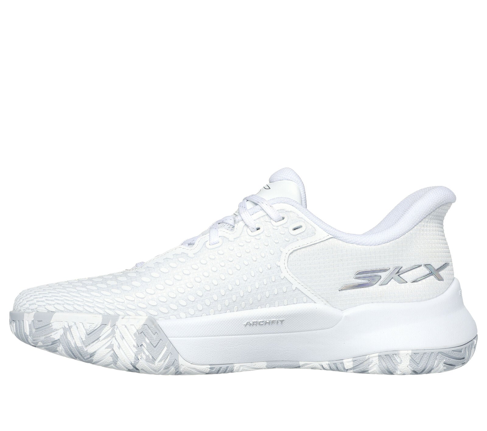 - Patented Skechers Arch Fit® insole system with podiatrist-certified arch support, developed with 20 years of data and 120,000 unweighted foot scans